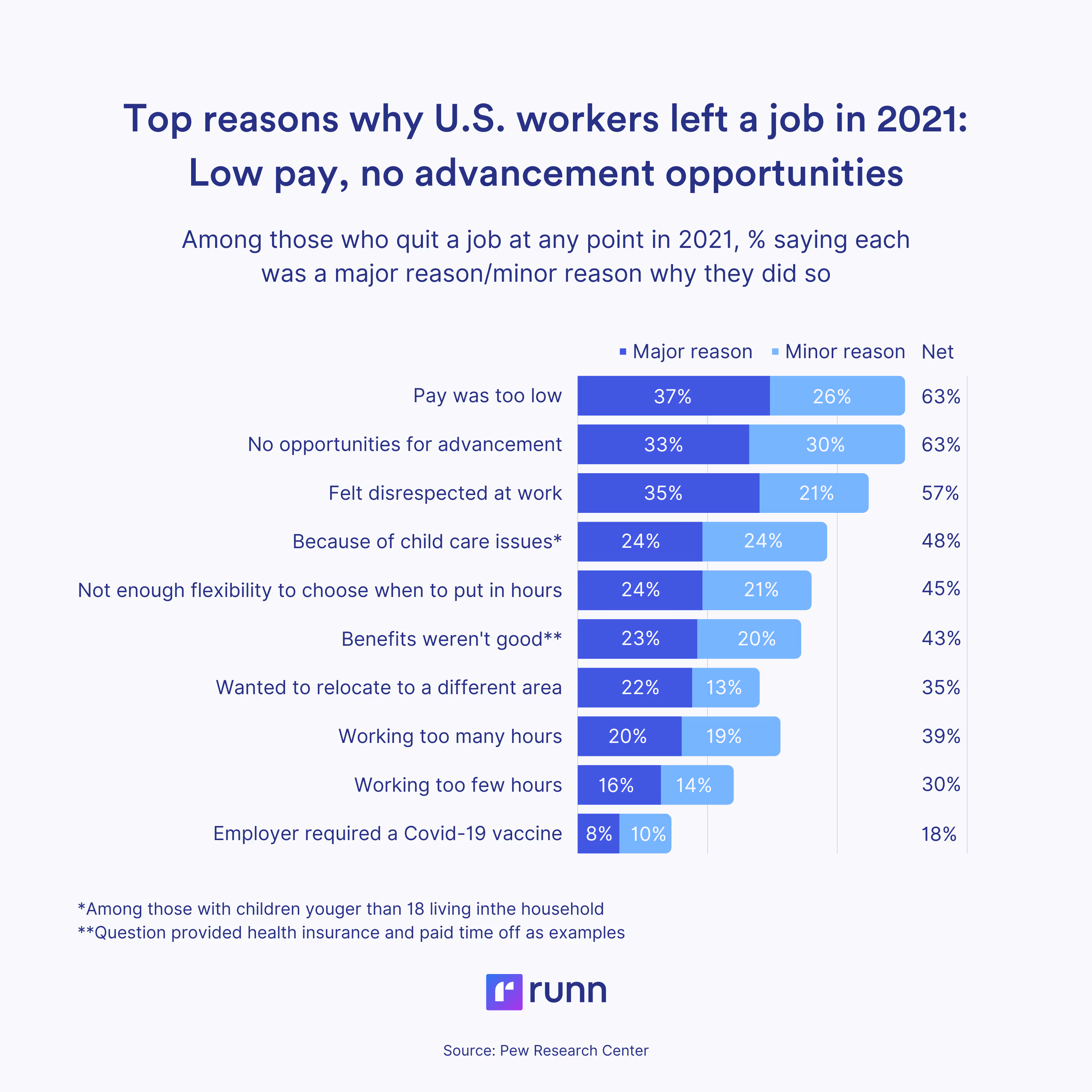 Pew Research Center research reveals the top reasons why employees left jobs in 2021 – the year that saw the most folks voluntarily quitting their jobs.