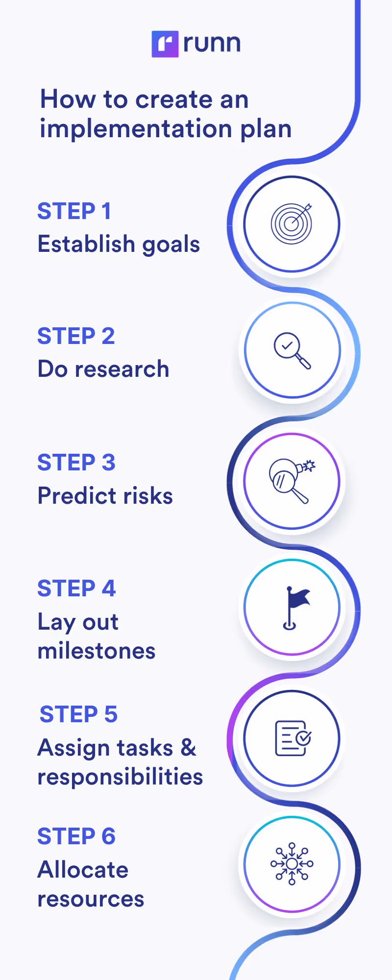 Doing this research might also require you to identify resource requirements, current gaps, and growth opportunities that need to be met before the timer in the implementation schedule starts running. By aligning available resources with previously outlined project goals, you can proactively identify where resources are spread too thin and take measures to give your team members the reinforcements they need to successfully deliver project objectives.