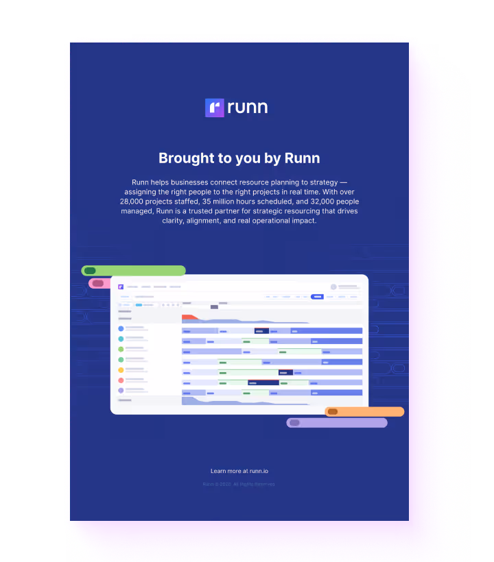 With Runn, we reduced our operational footprint and increased profitability. The synergy between teams is much stronger, and everyone now works from a single source of truth. That means better decisions, faster, so we can achieve more with less.