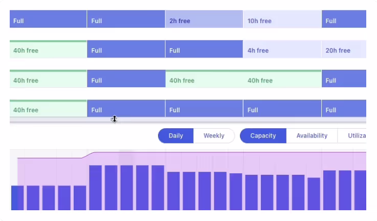 Get real-time visibility into resource availability so you’re not assigning work to already stretched-thin teams.