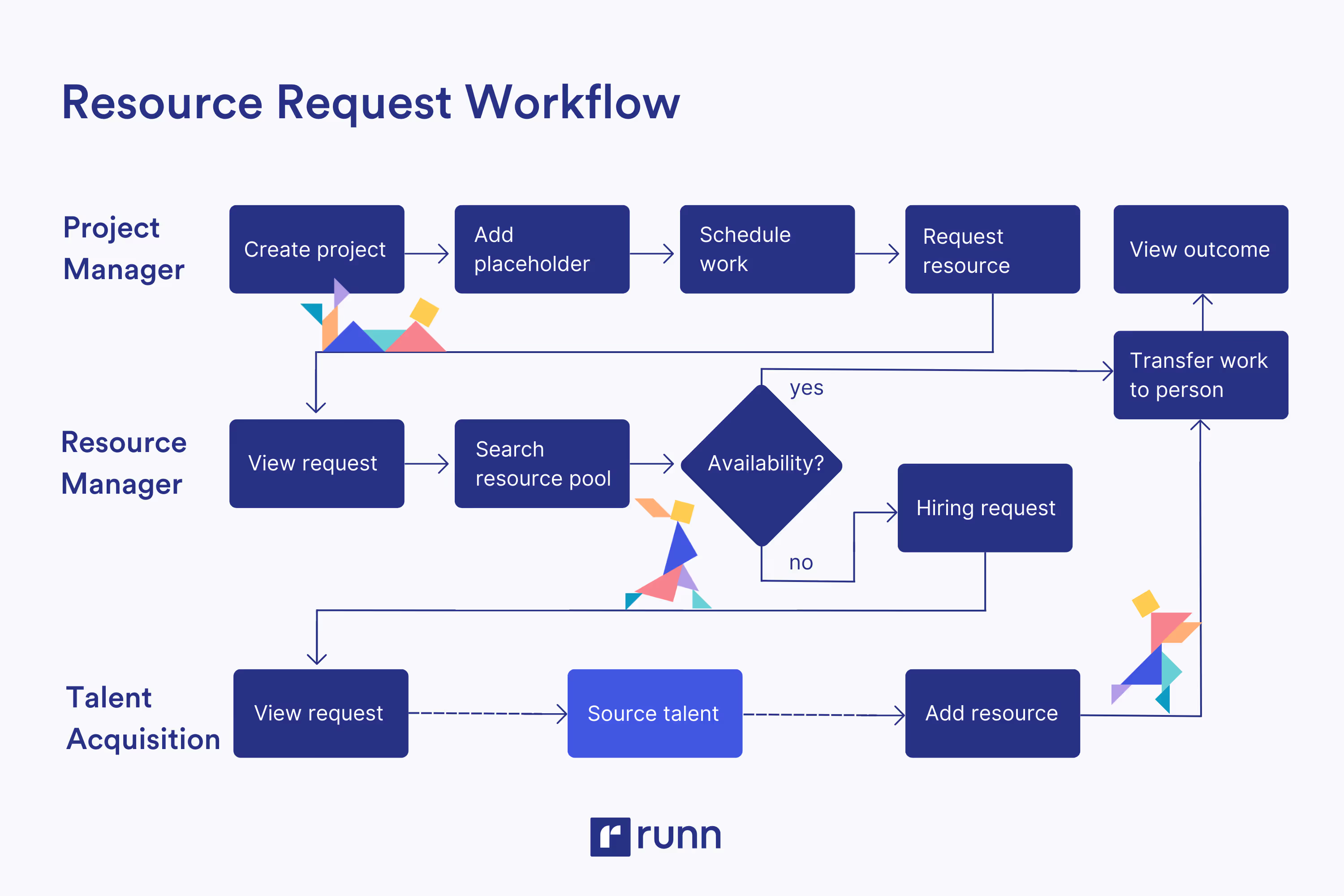 A resource request workflow provides a standardized - and centralized - process for requesting, approving, and allocating resources to projects. It is a key element of effective resource planning.