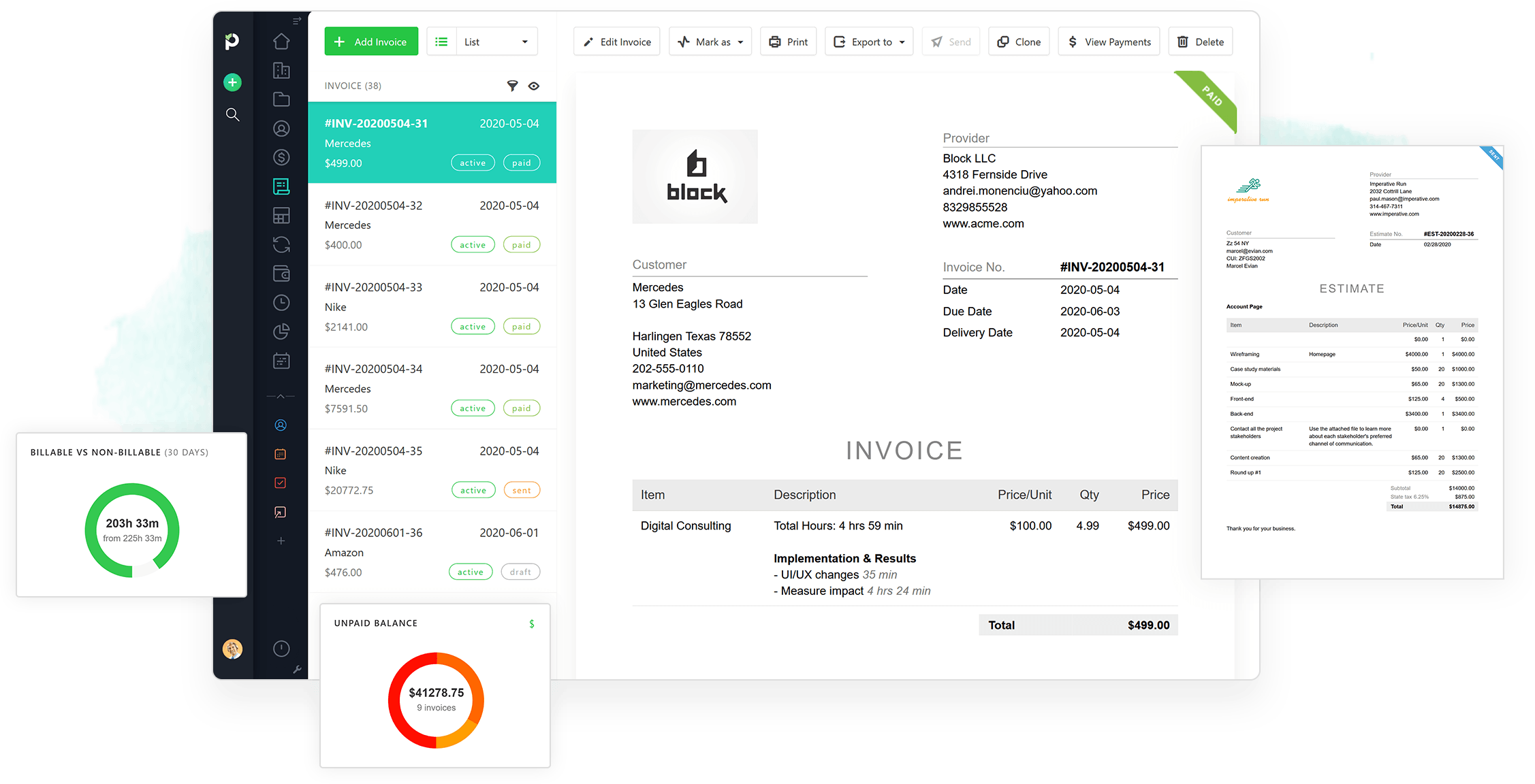 Forecast’s budget feature, project portfolio report, and powerful financial analytics package will keep you posted on the true cost, revenue, and profit of each project in real time and help plug any budget leaks. The tool can also facilitate your billing process by centralizing invoice management.