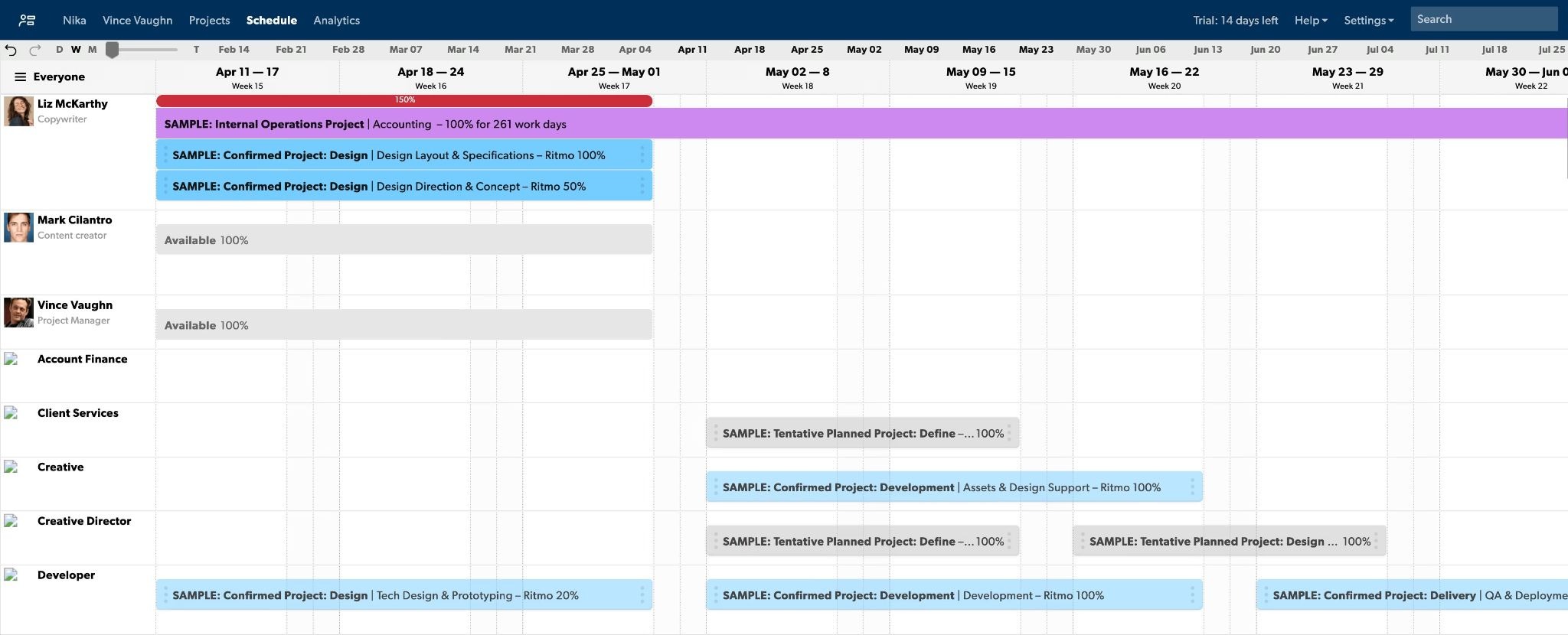 Resource planning tools do a lot of the heavy lifting for you. Updates carry through to other relevant reports, and budget and timeline management is automated. Resource planning becomes easier, faster, and more reliable.