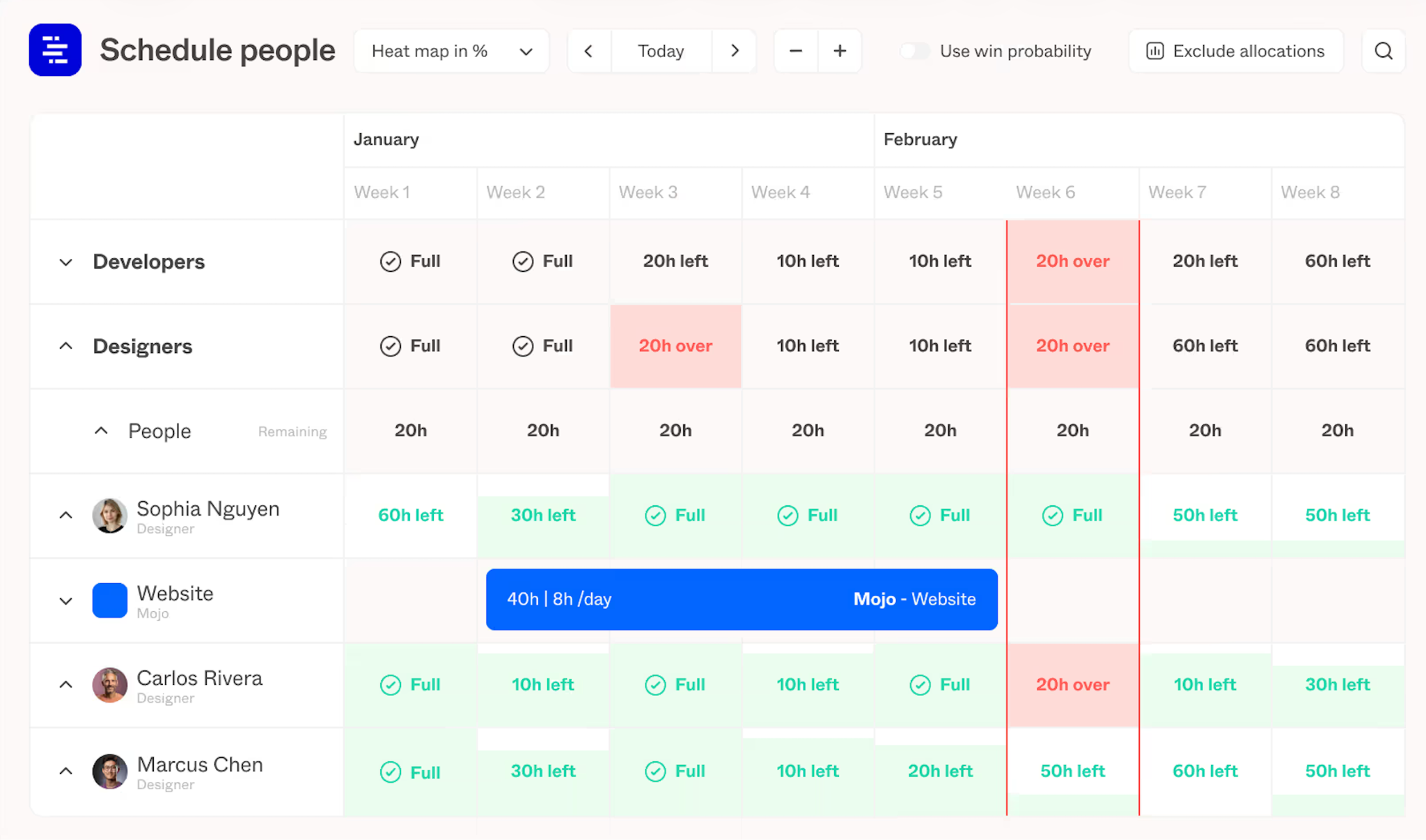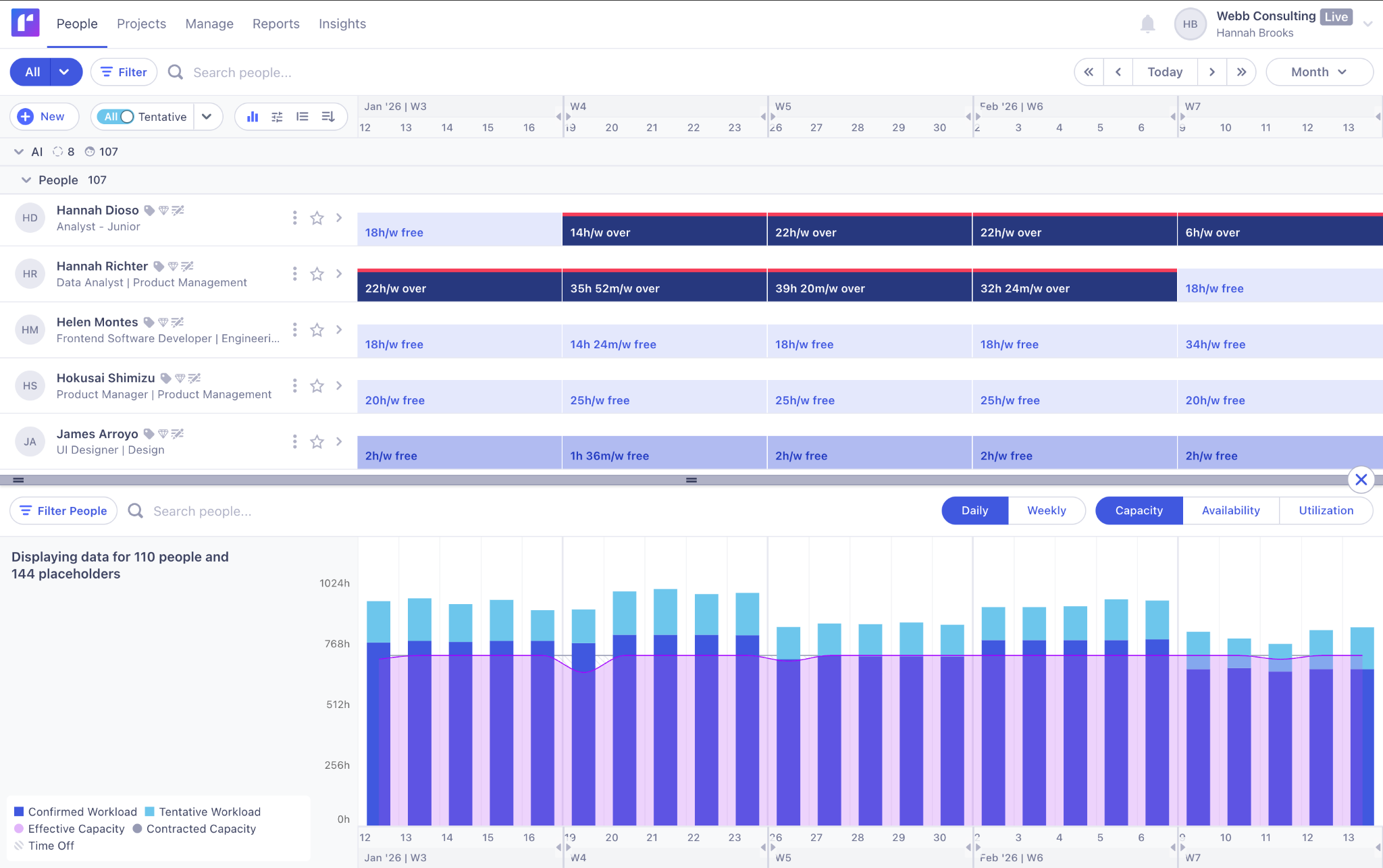 Mosaic uses AI to auto-build resource plans, suggest the right people for each project, and highlight when you’ll need to hire, based on capacity and availability.