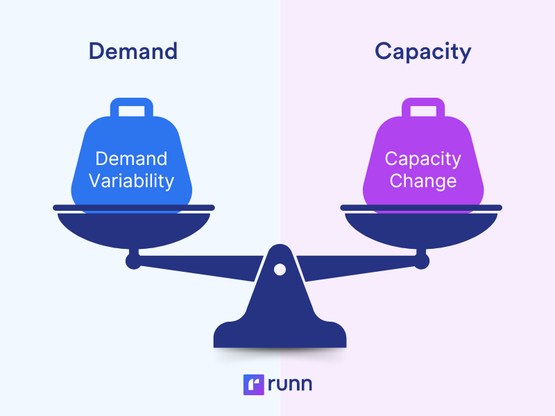 1) Demand variability. Demand is rarely static. In fact, depending on the type of the businesses you service that demand might be highly unpredictable. In peak season, you might notice that your capacity falls far behind demand, while in low season you might end up with whole teams of experts doing bench time.