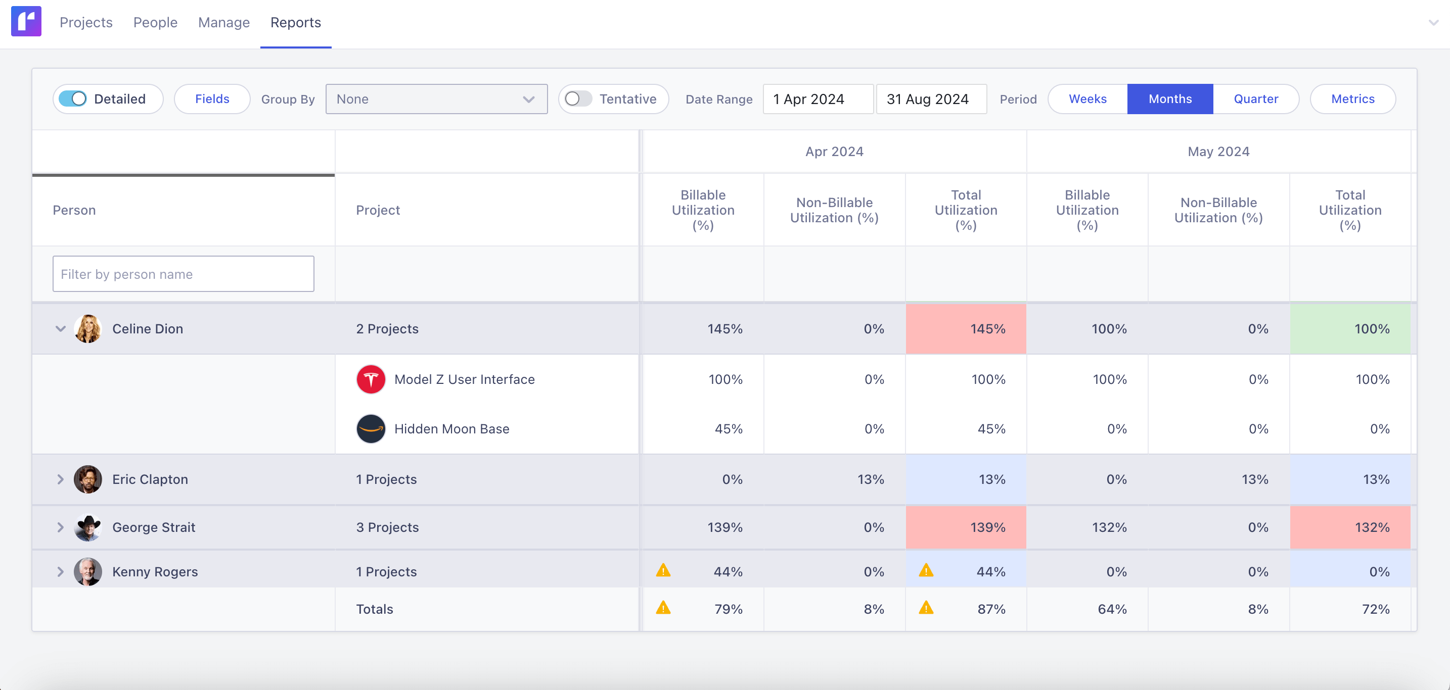 It helps you identify overworked human resources as well as ones who haven’t taken any time off (essential for keeping workplace burnout at bay).