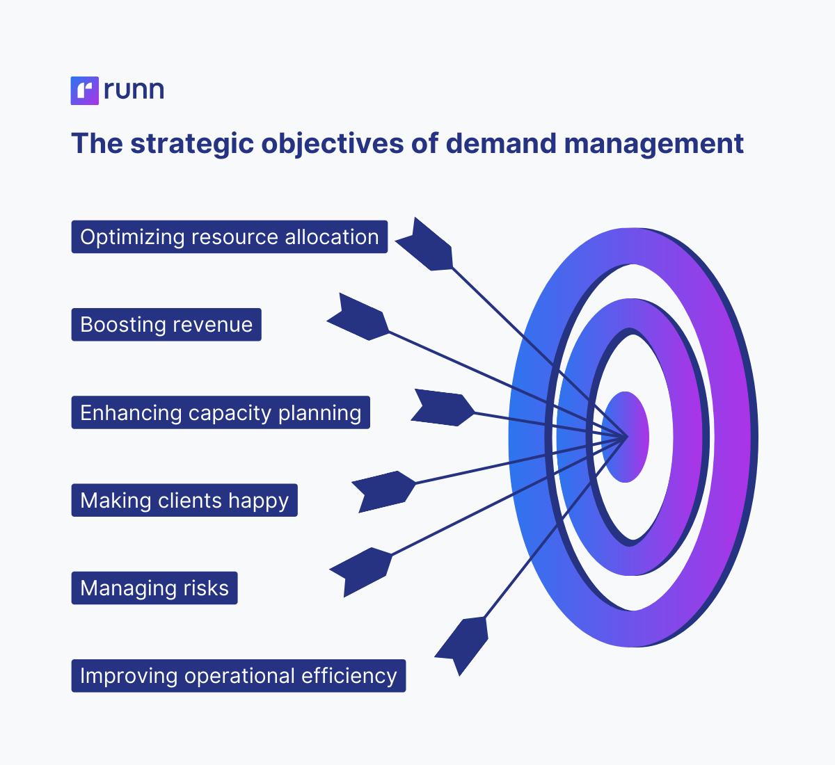 Demand management allows resource managers to plan internal projects around demand, ensuring resources are allocated to initiatives that generate business value. For example, teams will have more capacity to take on internal projects during slower periods.