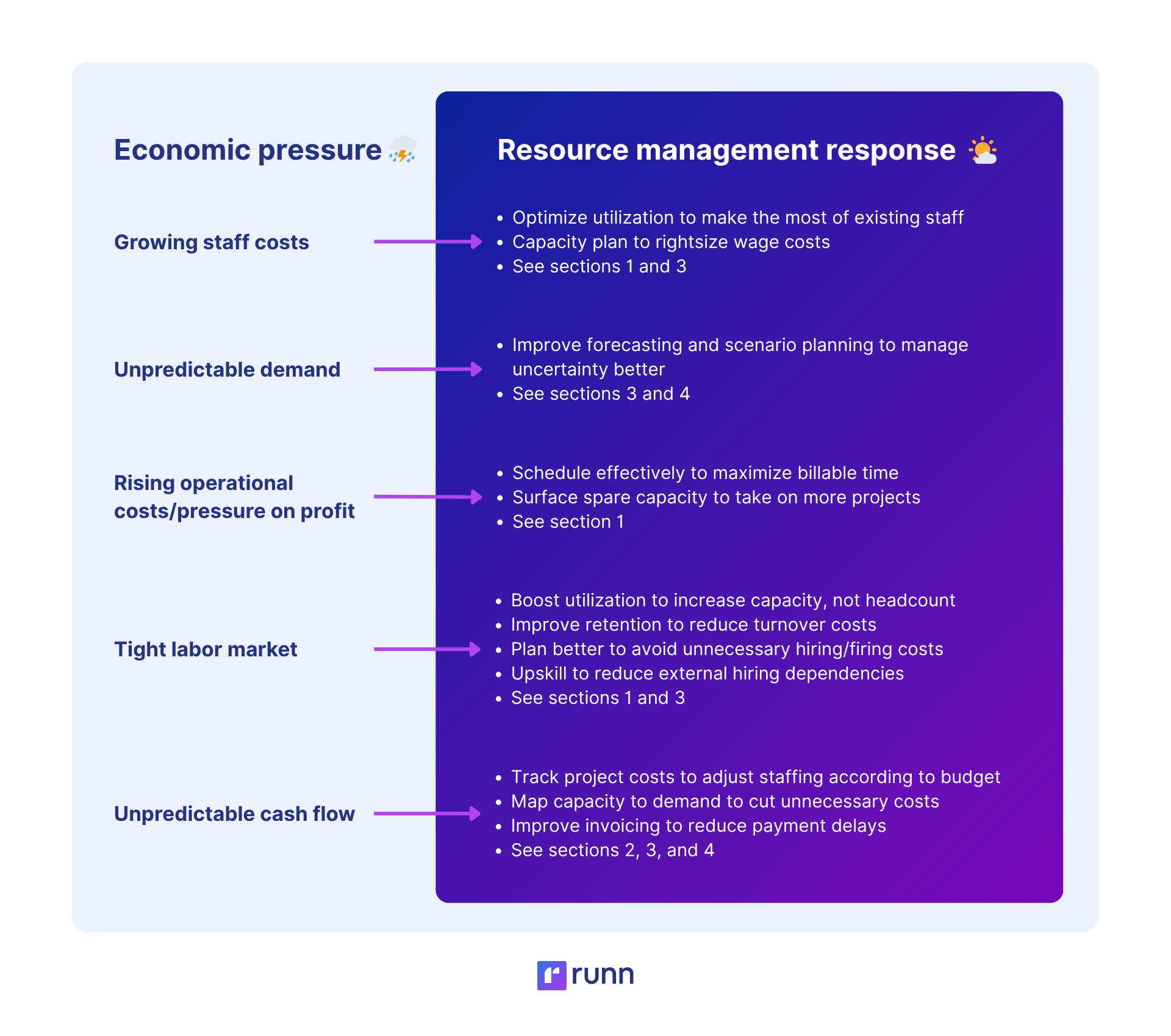 Explore how Runn can help your business navigate today’s economic pressure and come out stronger on the other side.