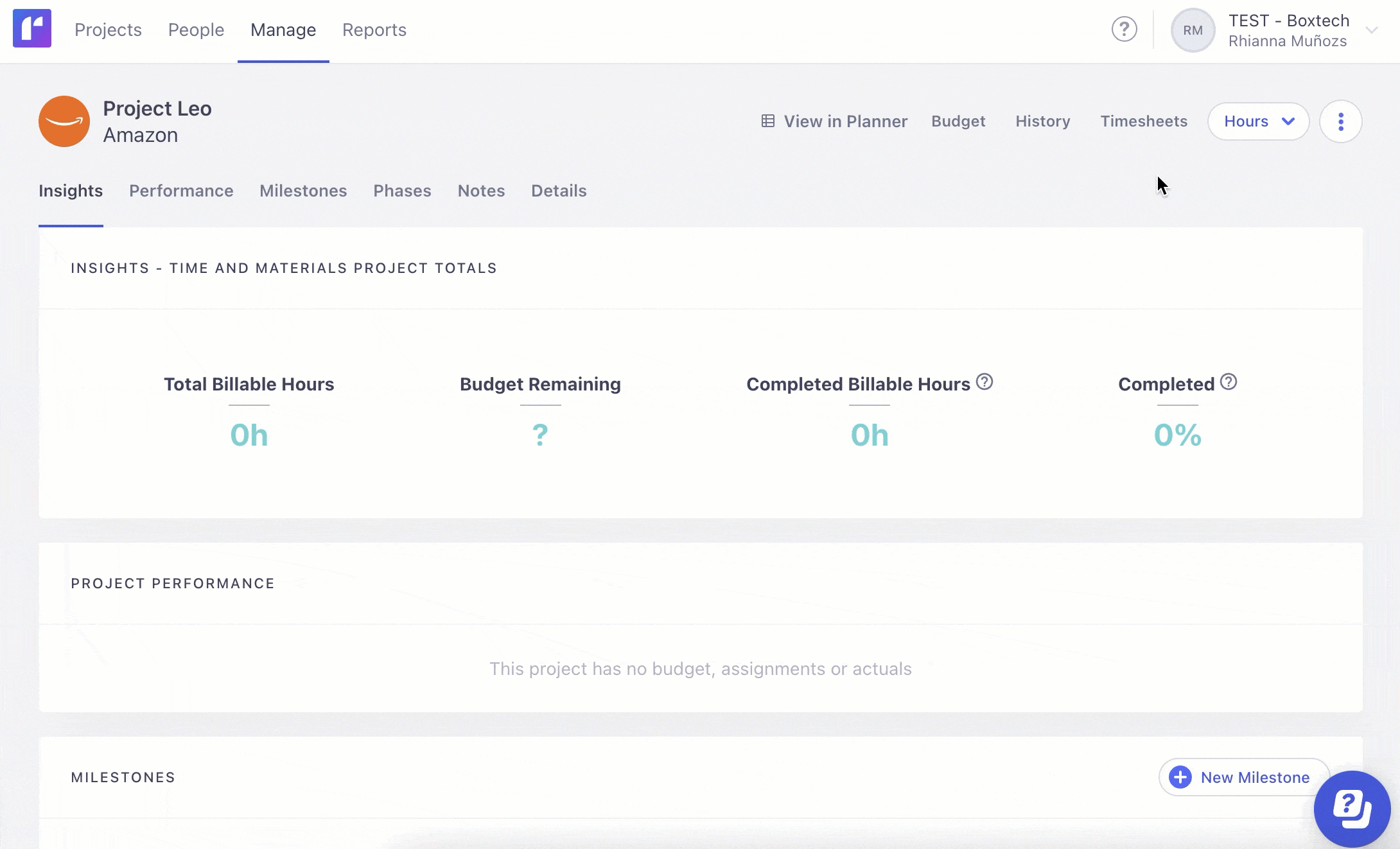 NOTE: In this example, we’ve used the bottom-up estimation method. If you want to use the top-down estimation method, go directly to the project’s Budget tab and enter the total scheduled hours for each resource type.