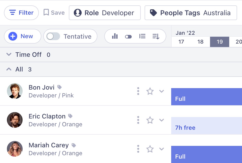 You can select multiple people at one time, or select a placeholder if no-one's available. It's easy to transfer ownership of a task from a placeholder to a real person once you know who it's going to be.