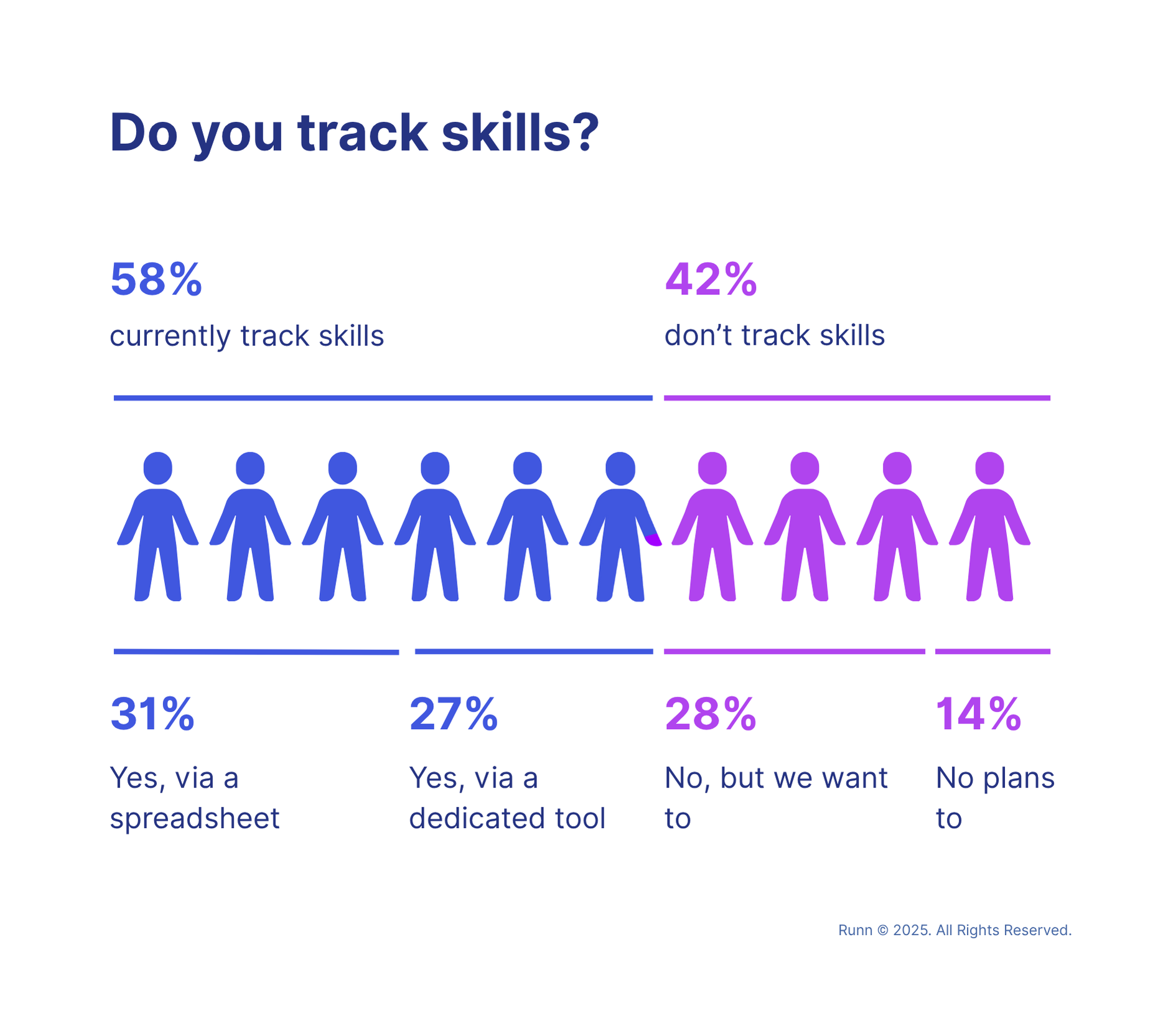 Our State of Resource Management in 2025 report found that 42% of businesses don’t track skills at all, while over half (53%) of those that do rely on spreadsheets. This means teams are staffing projects based on whoever is free or habit, not who is best suited to the work.
