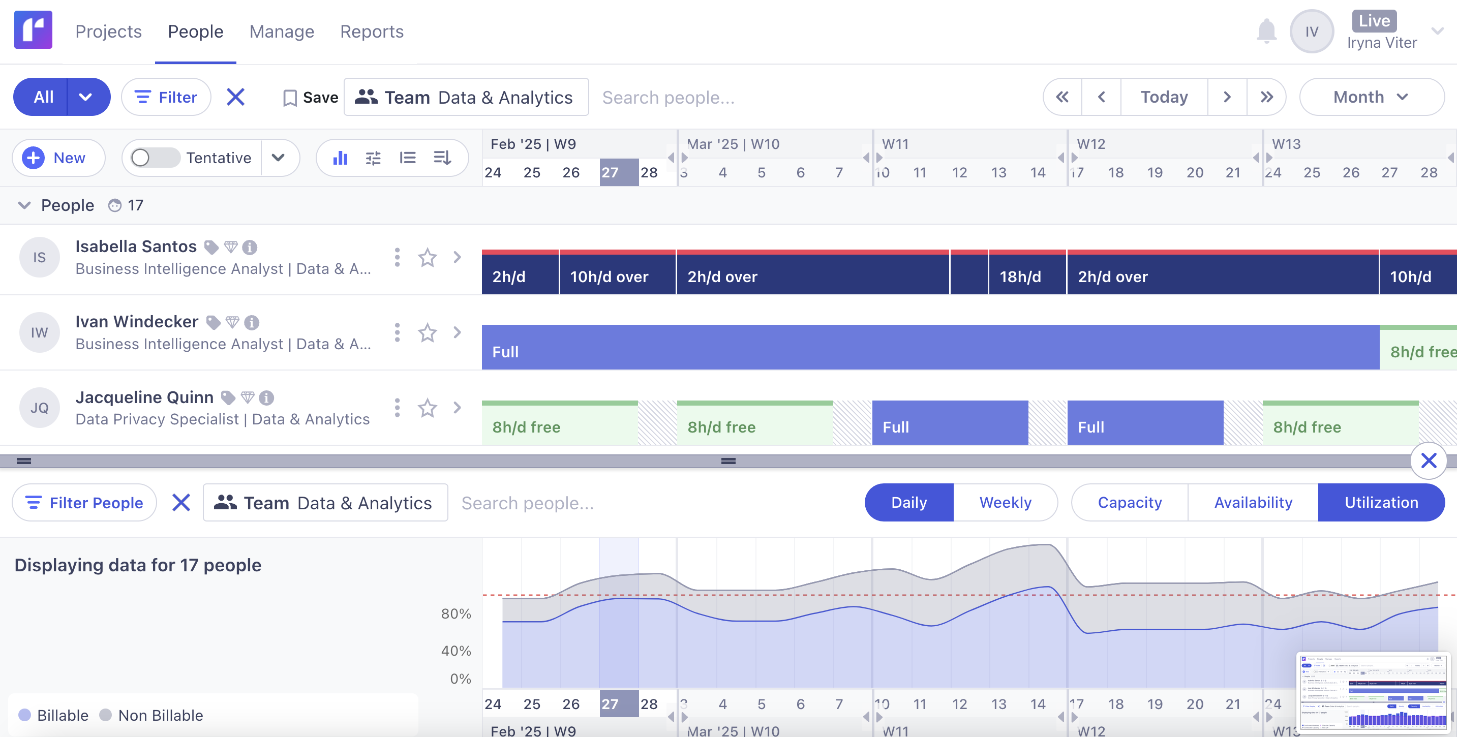 Purpose-built resource management software enables more sophisticated resource management, particularly at scale. It will help you streamline many processes, from planning and allocation to forecasting and reporting.
