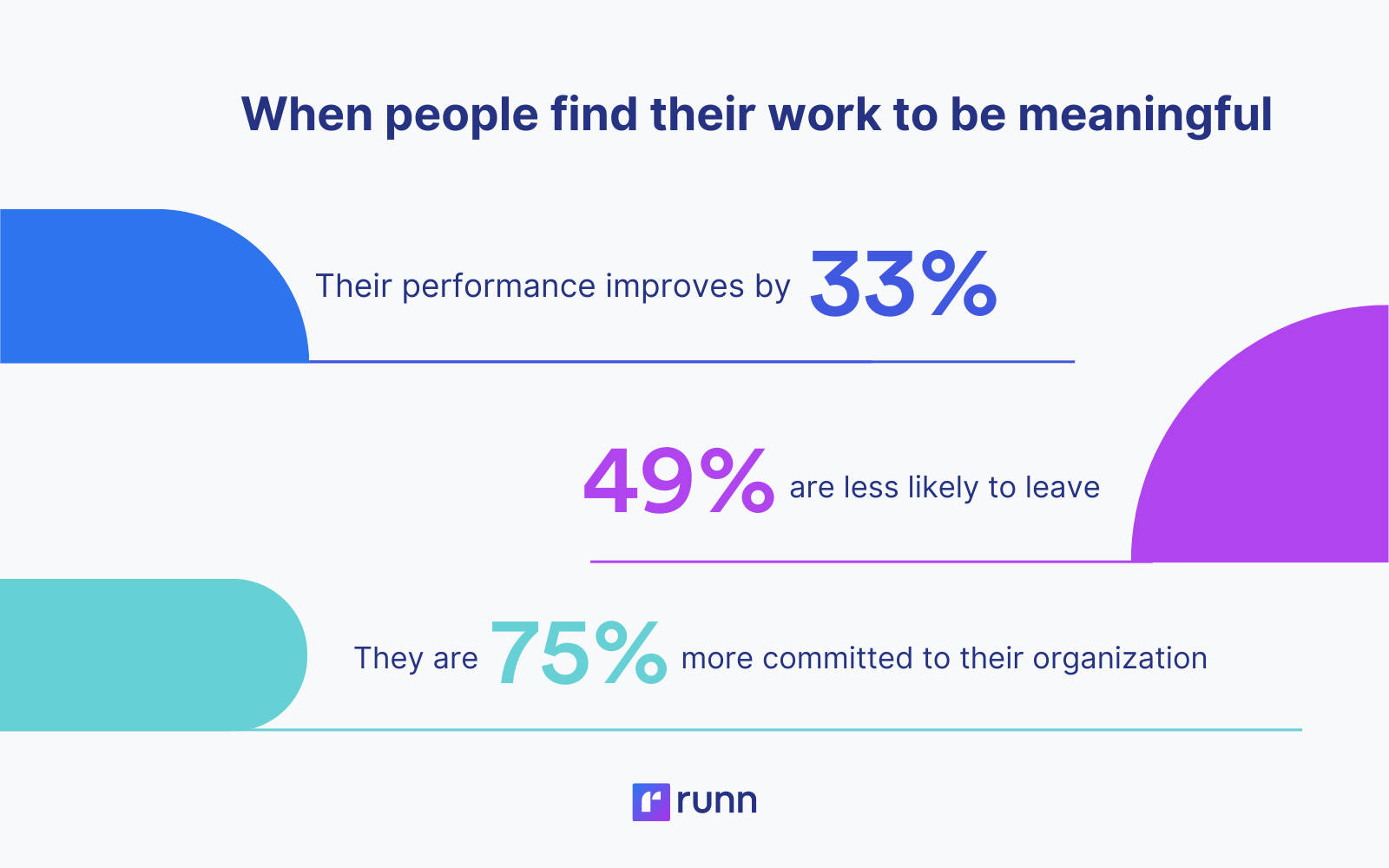 Research from McKinsey & Co shows when people find work meaningful, performance improves by 33% and they are 49% less likely to leave.