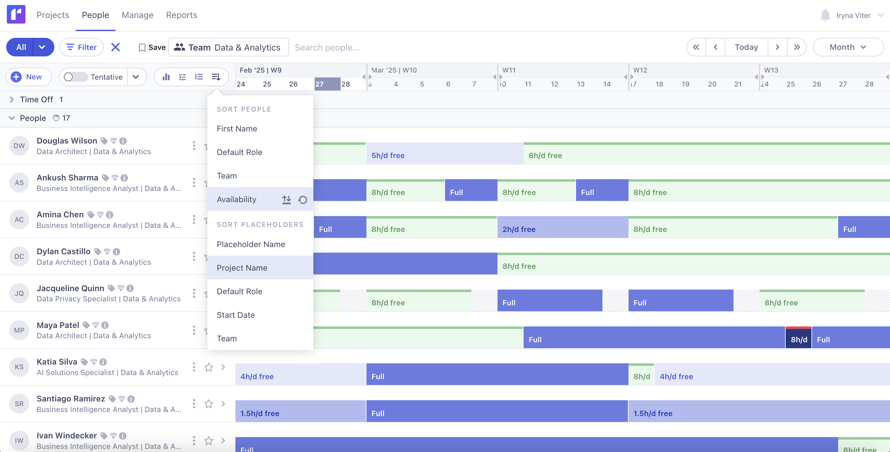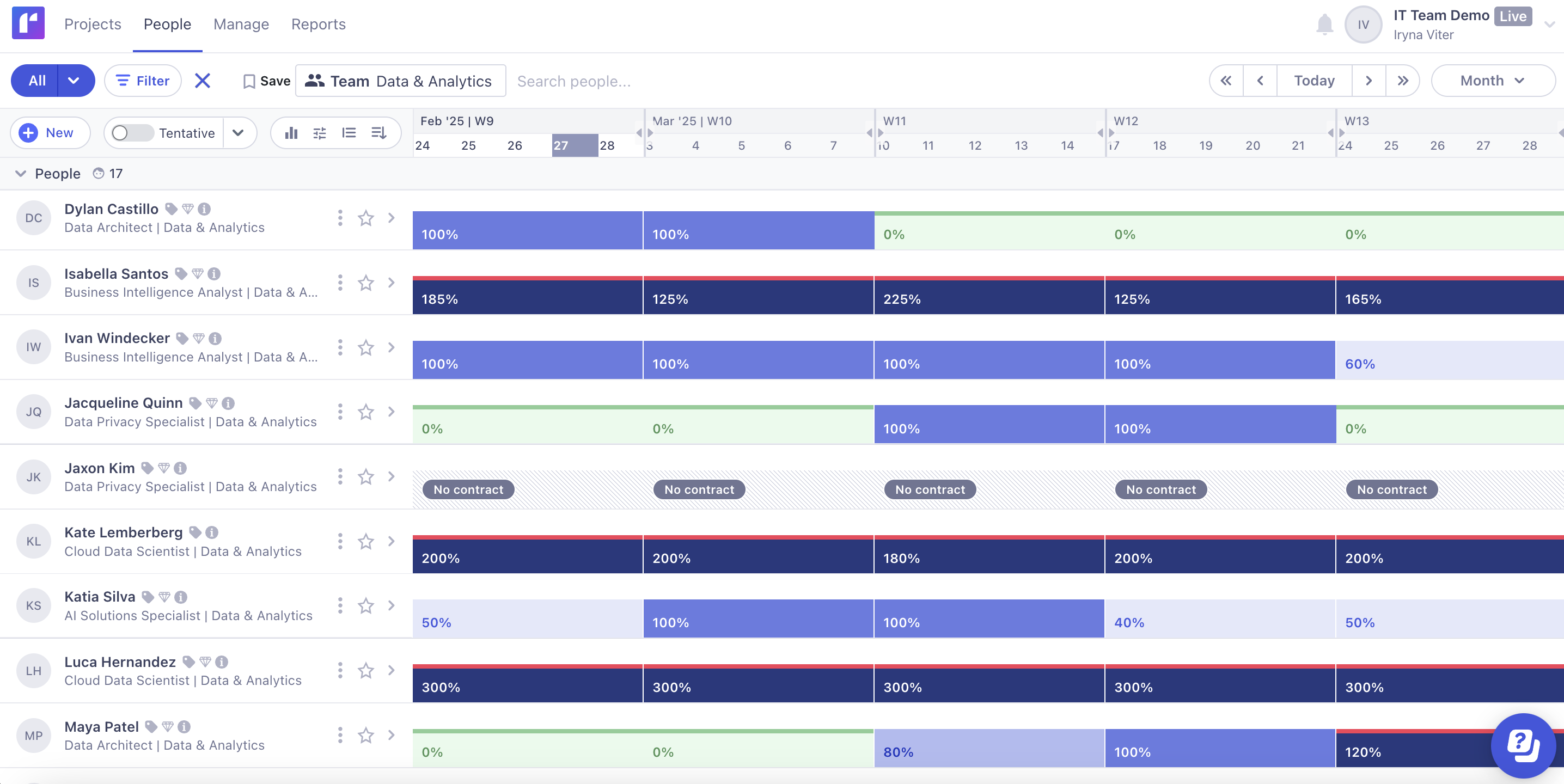 Delivery leads - Our availability report is so straightforward that your leadership team can easily hop in and see where things stand. A quick glance at the mountain range flags any forthcoming capacity crunches so they can take decisive action.