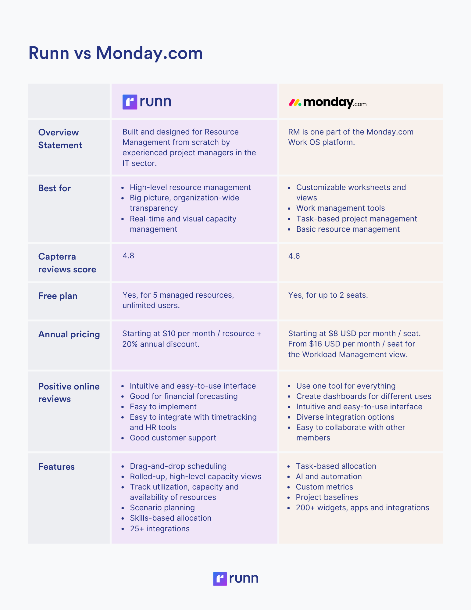 But are they any good for resource management? And which is better suited for your resource management needs - Monday.com or Runn?