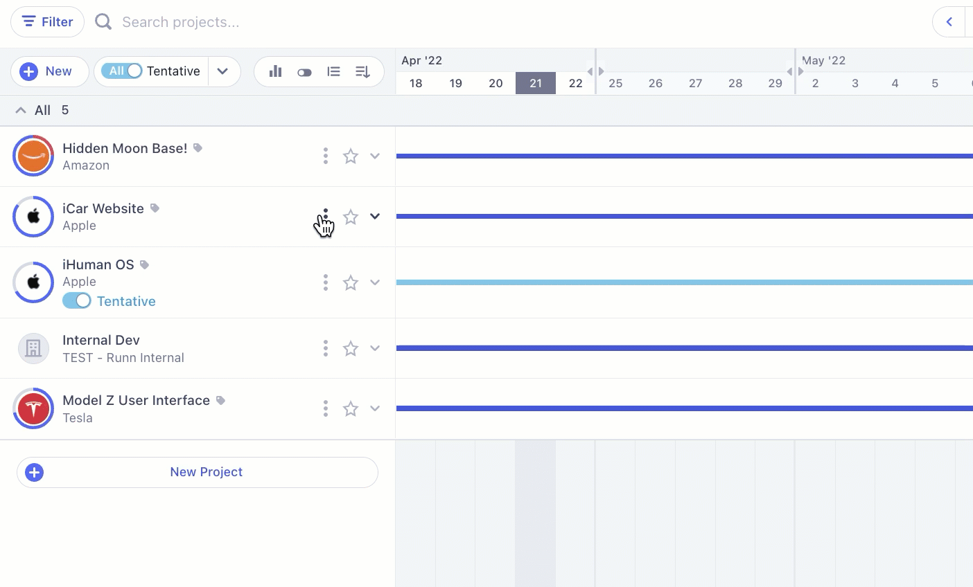 What’s really handy is the fact you can create tentative projects in Runn too. Projects that might happen, might not.