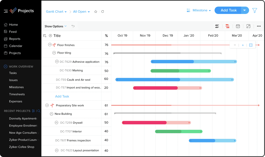 Its project scheduling and management features enable detailed timelines, milestone setting, and efficient resource allocation. Task-setting and monitoring capabilities break down complex projects into manageable tasks, ensuring accurate forecasting and reducing schedule and budget risks.