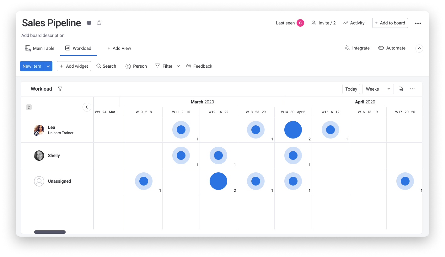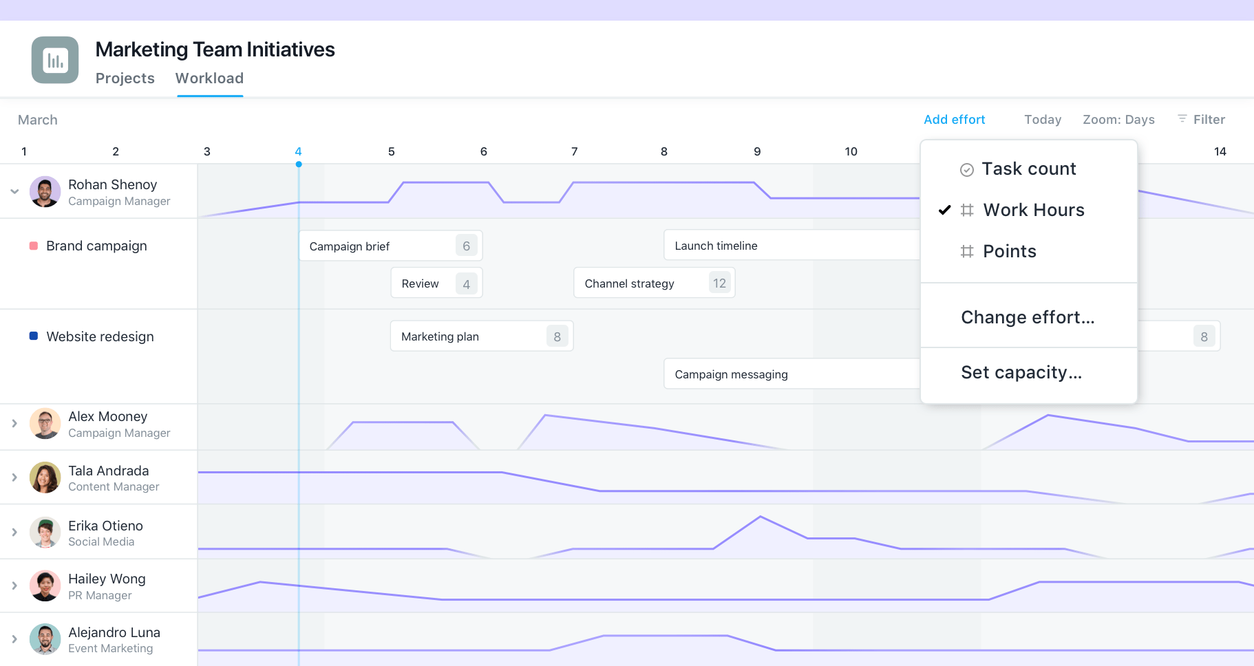 Workload view helps to see which team members can take on more work, while it also comes with capacity and timeline dashboards to further optimize workload management.